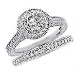 Customer Review :Halo Set Round Brilliant Cut Diamond Engagement Ring Matching Wedding Band Bridal Set Vintage Style 14K White Gold (1.64 Cttw, VS-1 Clarity, G Color) Specification Free Shipping